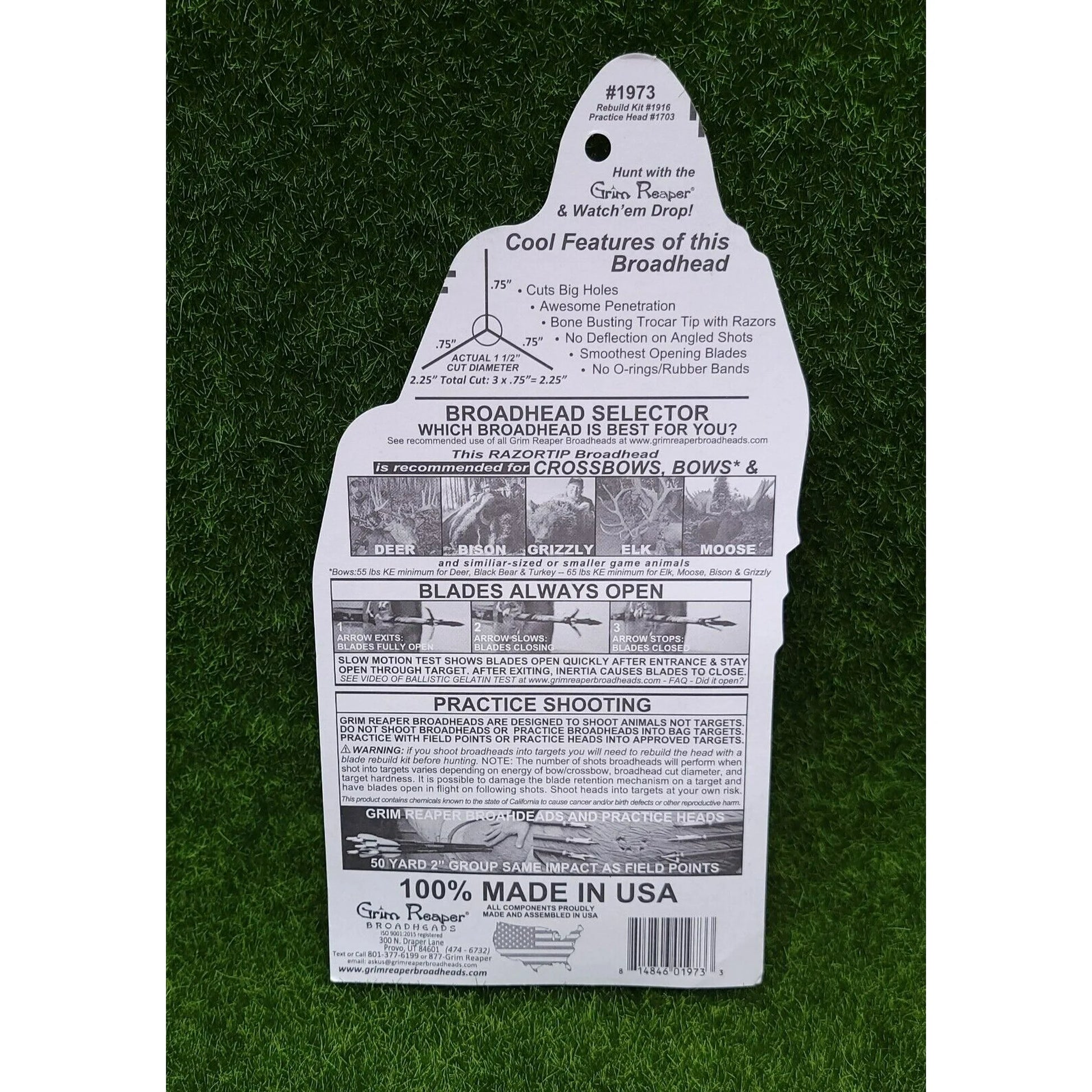 The Grim Reaper 1973 X-Bow Mechanical Broadhead features a razor-sharp stainless steel tip engineered for high-speed crossbows. Weighing 100 grains and offering a 1 1/2" cutting diameter with three blades, it maintains closed blades at velocities exceeding 400 FPS, delivering field-point accuracy out to 100 yards. The broadhead incorporates patented mini-tip blades that significantly improve penetration. Crafted from .035" thick 440 stainless steel blades and reinforced with an aircraft-grade aluminum ferrule, it offers exceptional durability. This pack includes three broadheads designed for precision and toughness in demanding hunting conditions.