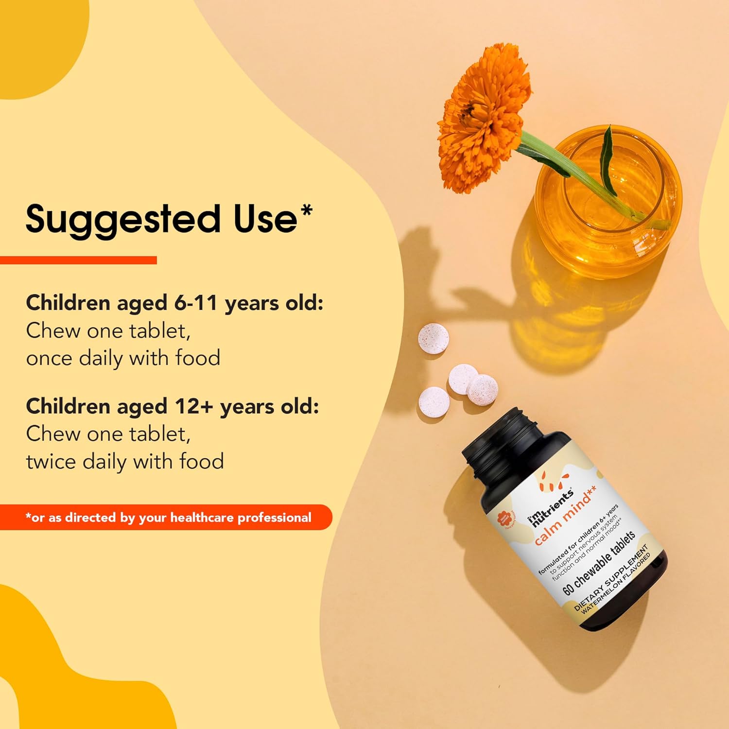 CALMS MIND & SUPPORTS NERVOUS SYSTEM — Formulated for children 6+, this children's chewable vitamin supplement helps calm the mind and body while supporting cognitive and nervous system function. Made with saffron, zinc, magnesium, and active vitamin B6, key nutrients for brain health and emotional balance.