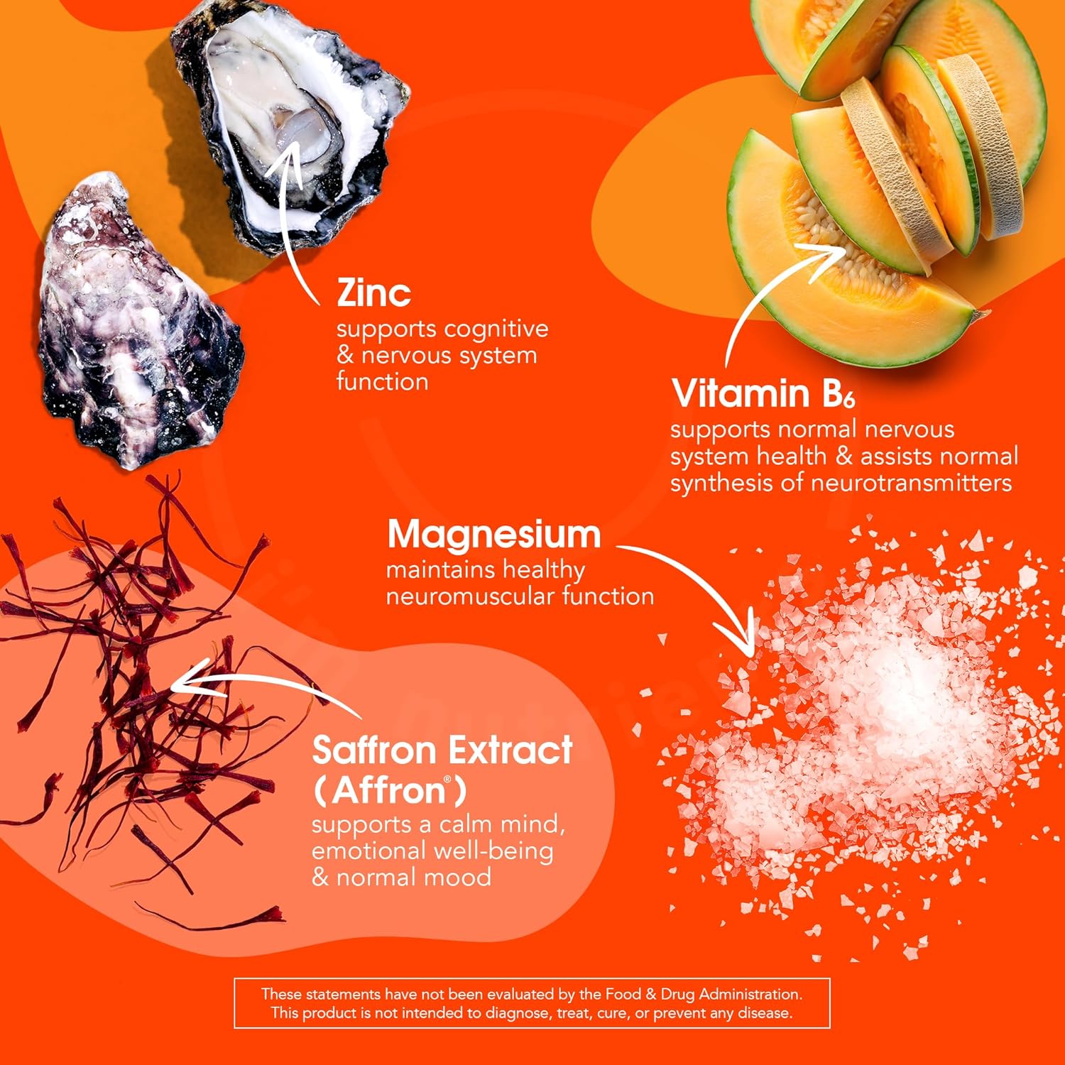 AWARD-WINNING FORMULA FOR CALM & FOCUS — Saffron extract helps support a calm mind, emotional balance, and a positive mood. Zinc supports cognitive function and contributes to focus, while Magnesium for kids and vitamin B6 work together to support a healthy nervous system. Vitamin B6 also plays a key role in producing neurotransmitters, and Magnesium for children helps with relaxation and muscle function—all essential for better mood, behavior, and restful sleep.