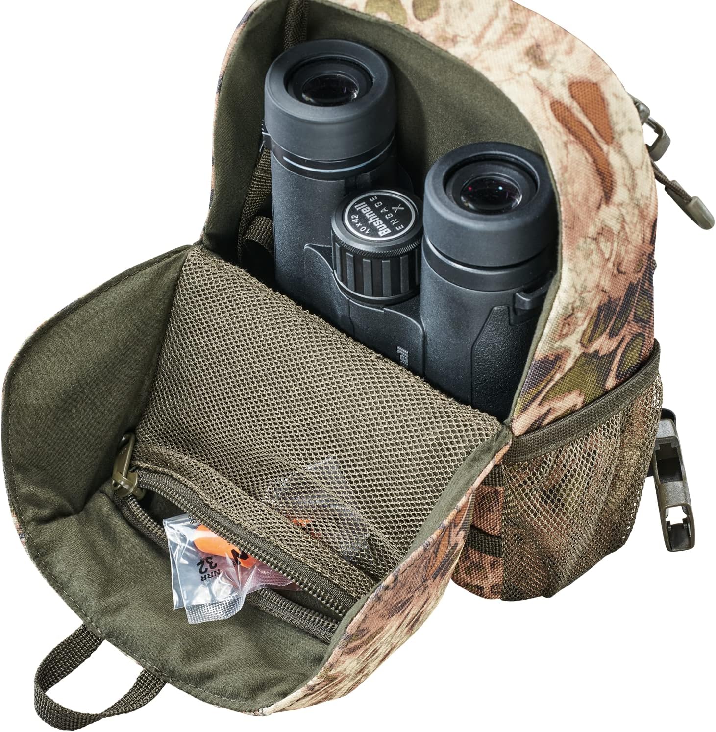 Easy of Use: The magnetic opening allows for one handed opening, the Caddy has the option to connect your binos the to strap as well so you do not have to worry about accidentally dropping them while you use with one hand to identify your target and keep your bow or gun in your free hand.