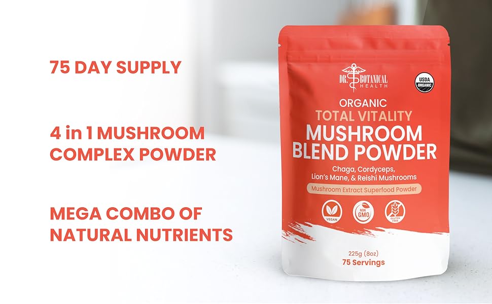 At Dr. Botanical Health, we've carefully selected and harvested the finest mushrooms, expertly dried and powdered them, and then hand-packaged them to ensure quality.