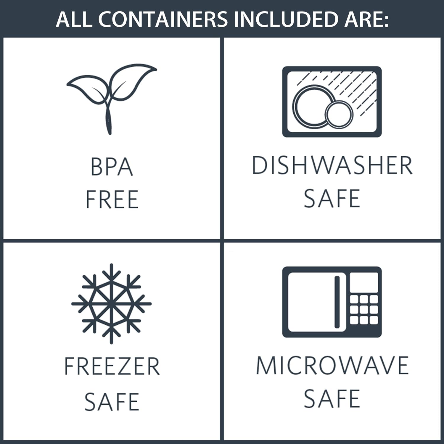 • MATERIALS YOU CAN TRUST: Containers are BPA-free, PVC-free, dishwasher safe, microwave safe and freezer safe.