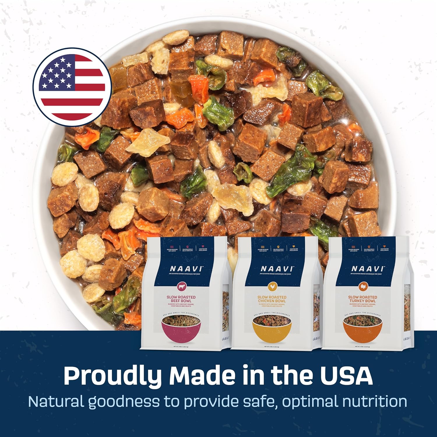 • BUILT ON SCIENCE IN THE USA: Naavi is formulated by a board-certified nutritionist to provide complete and balanced nutrition for adult dogs of all breeds and sizes, supporting their health, energy, and vitality. Our recipes are proudly made in the USA using high-quality ingredients