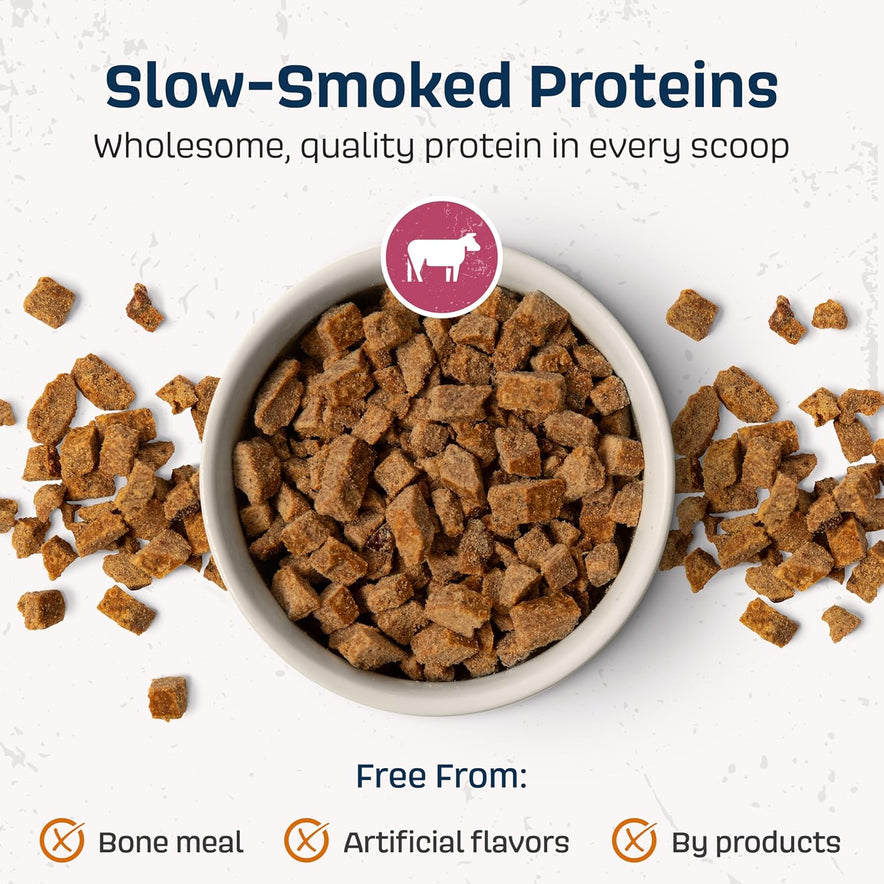 • SLOW-SMOKED PROTEINS: Naavi’s tender meat pieces are slow-smoked to lock in flavor and nutrition. No added bone, dried meats, meat meals, byproducts, or artificial flavors. Naavi delivers wholesome, quality protein for dogs with every scoop