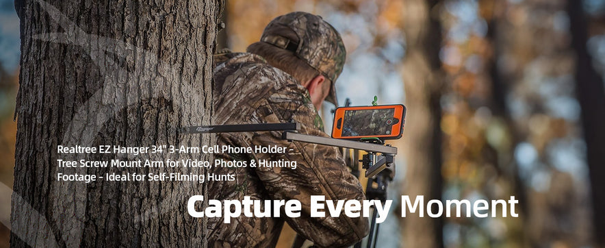 Realtree, EZ Hanger – 13" 2-Arm Bow Hanger with Arrow Holders – Tree Screw Mount for Treestand Hunting – Holds Bows – Quiet, Durable & Adjustable Hook Arm