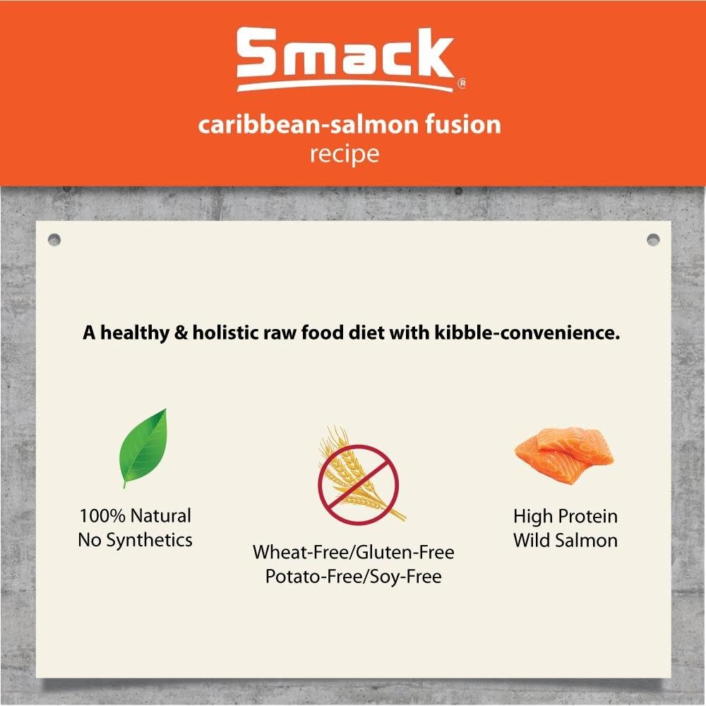Indulge your dog with a tantalizing blend of wild-caught Pacific salmon and rockfish, enriched with tropical superfoods. Made up of 80% wild BC salmon and Pacific rockfish (including bone-in and organs), and 20% certified organic, GMO-free fruits and vegetables, this delectable and nutritious meal is free of fillers, gluten, grain, and synthetic vitamins. Plus, the low sugar and starch content make it a healthy choice for your beloved pet. Treat them to a taste of paradise with Smack, Pet Food Organic Raw Dehydrated Dog Food.